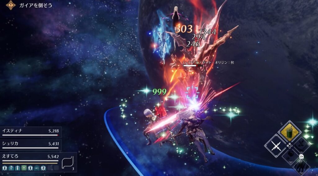モノライト・オリジン:春、モノライト・オリジン:夏、モノライト・オリジン:秋、モノライト・オリジン:冬を順々に倒していきます。ダメージを喰らった分こちらのHPが999で回復していく仕様で、全く苦戦することなく倒せます。