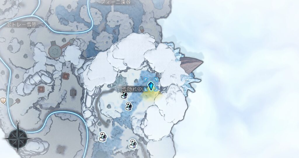 テーリア氷雪島についたら北の方へ向かい雪隠れの山を目指します。