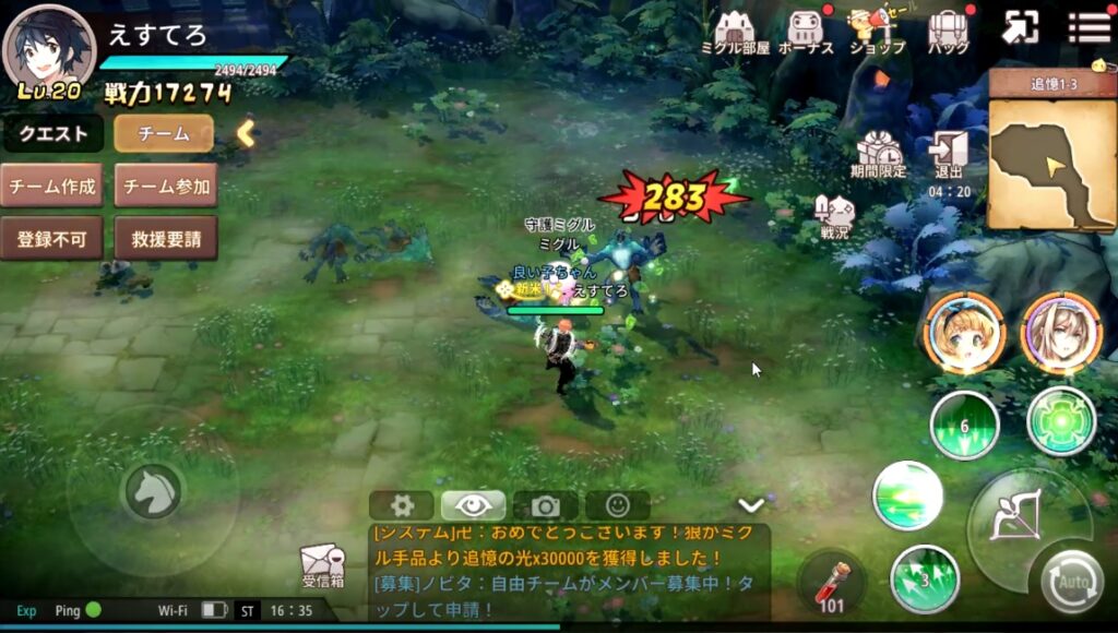 やっぱオンラインゲームの醍醐味といえば、他のプレイヤーと共にプレイする事。これが早い段階で解放されるのは嬉しいですよね。