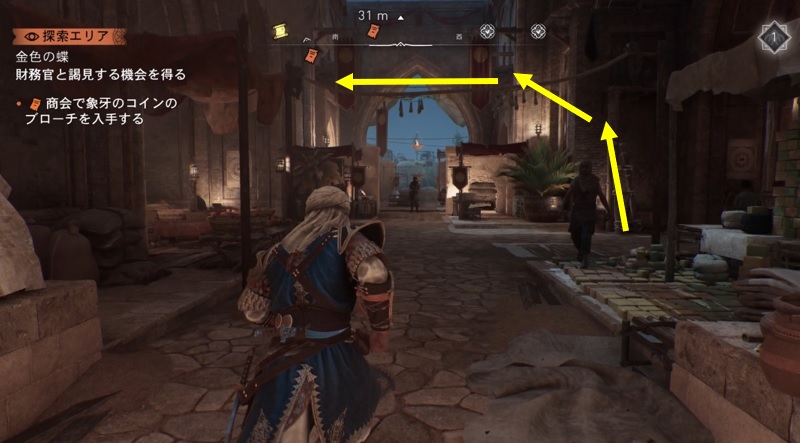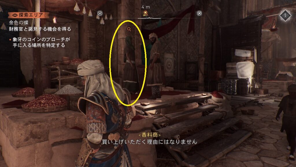 商人のコイン1枚か150ディルハムを渡すと象牙のコインの情報が手に入る。