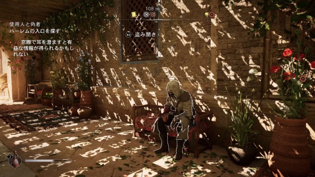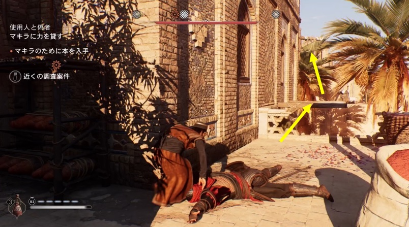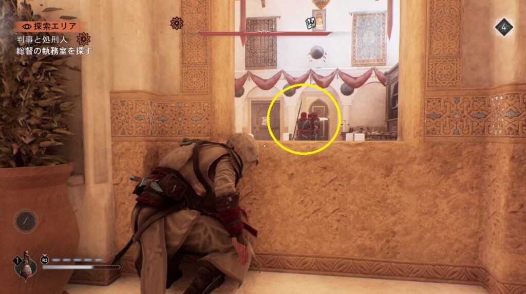 - 衛兵を倒しながら進み木を伝って部屋の裏側へ回る