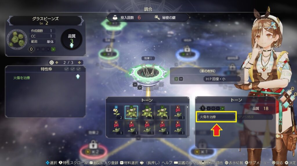 ライザのアトリエ3の調合での特性について。