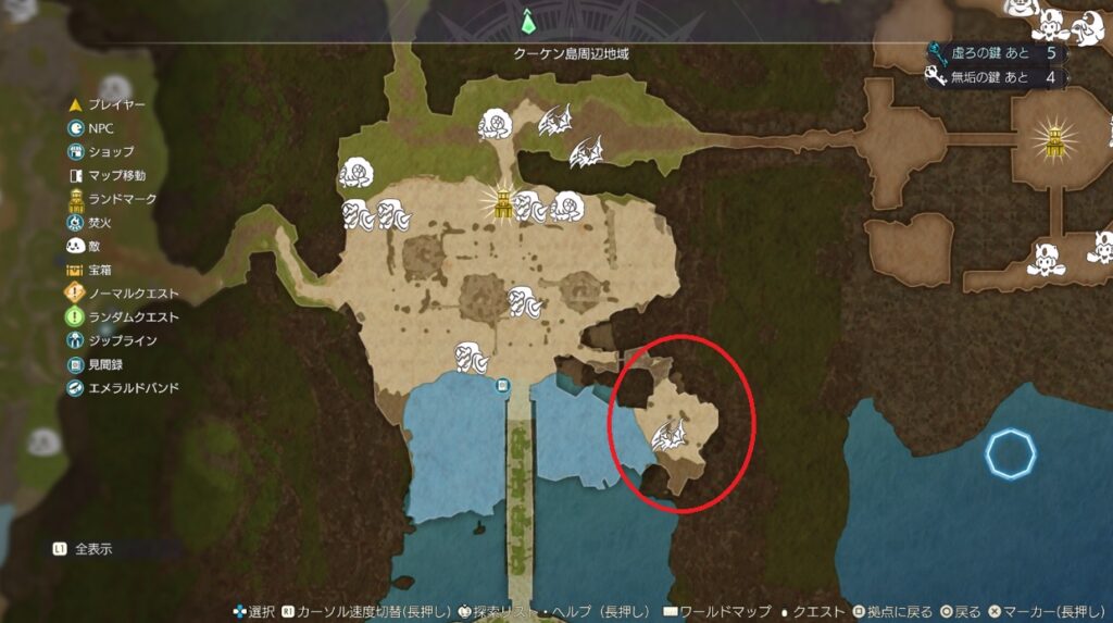 管理人は聖堂望む隠れ浜の南東にある箇所でマラソンしてました。金色のスポットが2つあるのでファストトラベルを繰り返して回収できます。