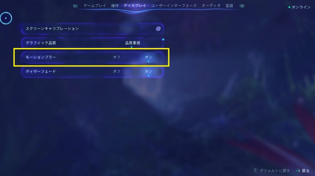 管理人はどのゲームでモーションブラーはオフにしてます。これあると普通に見づらいし酔うしでいいこと一つもないんだよね…。