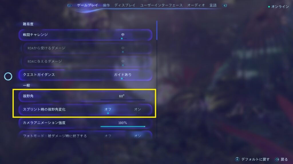 アバターフロンティアオブパンドラも酔いやすい部類のゲームだと感じたので、酔いを軽減できるようなゲーム内設定をまとめてみました。