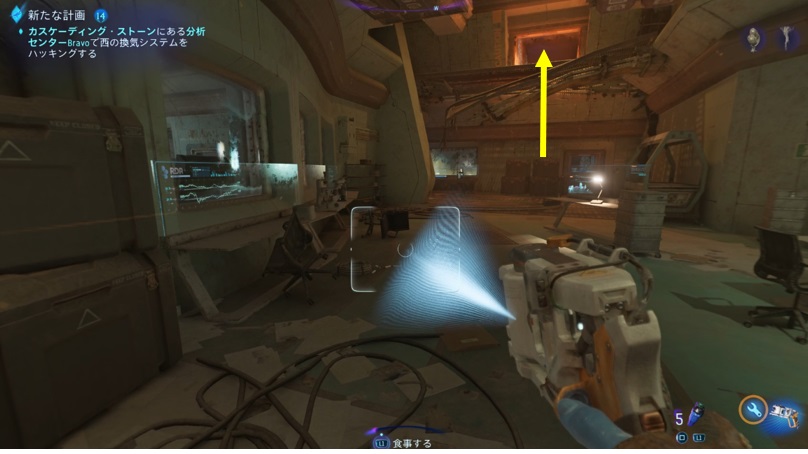 破壊に成功すると画面が切り替わった正面のドアが開きます。中でRDA勤務表やショットガン・メモ・オーディオログが回収できる為、ストーリーのついでに破壊しておくのが効率的ですね。