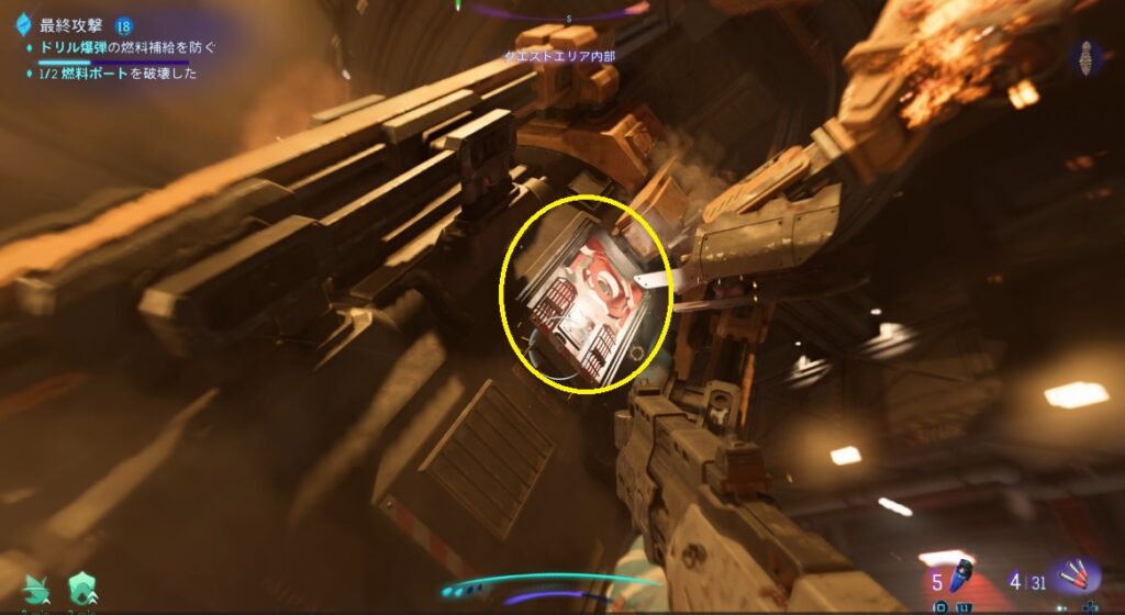 赤い電源部分を破壊しながら奥へ