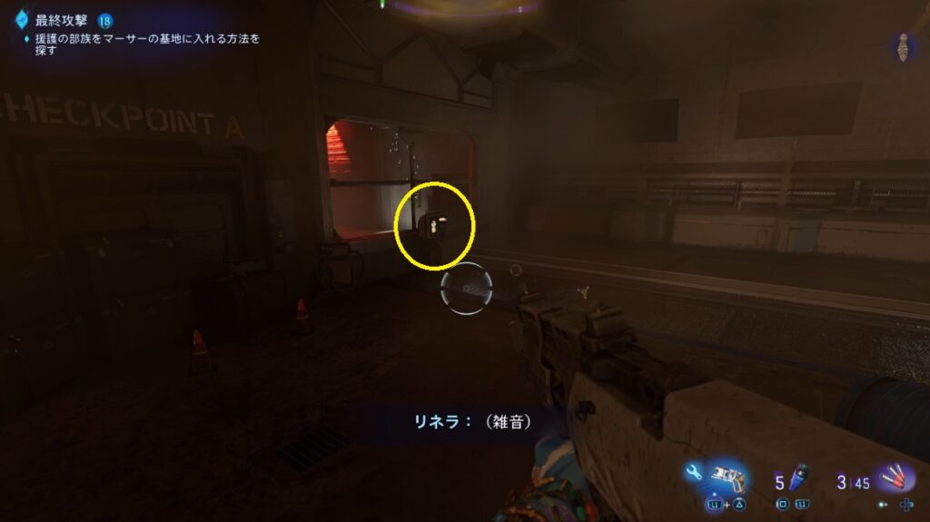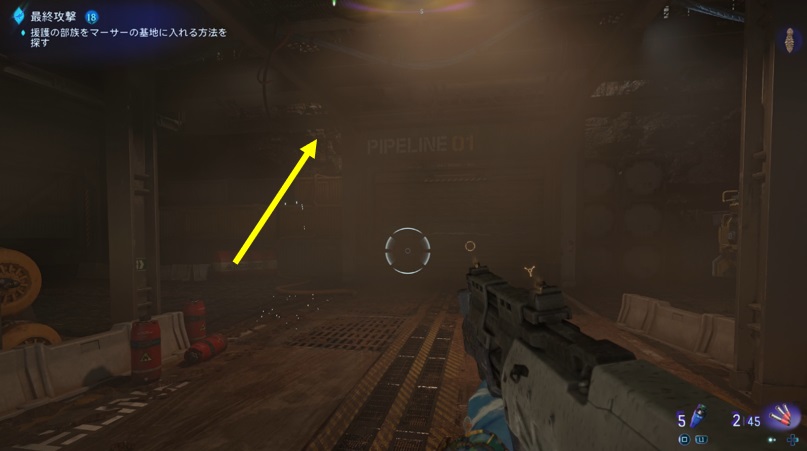 シャッター扉の横を登り扉の向こう側へ行く。しばらく進むとRDAの奇襲攻撃。