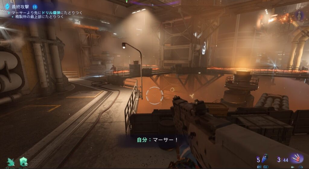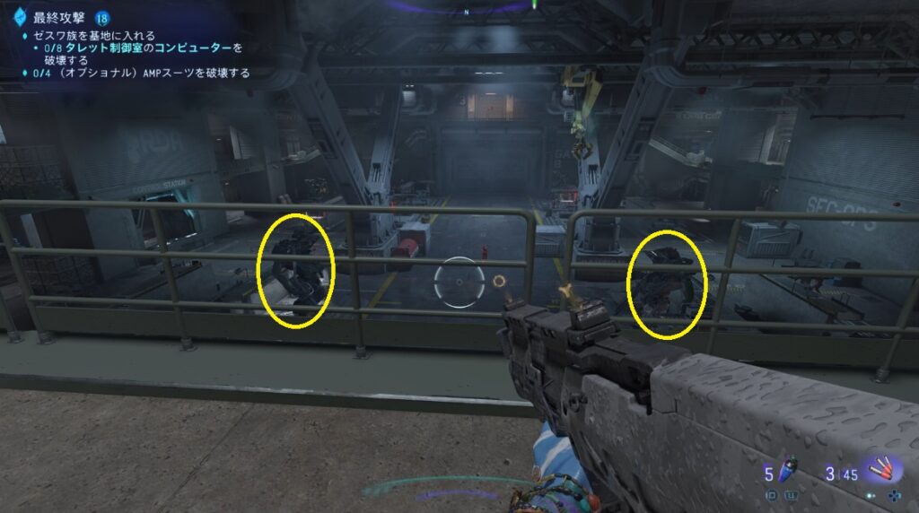 格納庫みたいなところでAMPスーツを4体破壊しておくとこの後で増援で出現しないっぽい?完全オートセーブなので未確認です。