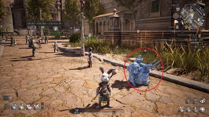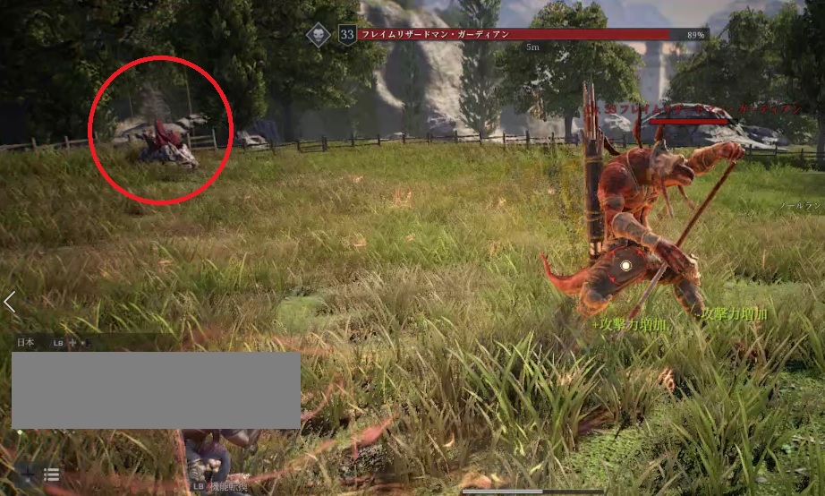 画像の左上にチラッと見えていますが、イベント限定の鉱石を調べると出てくるモンスターがフレイムリザードマン・ガーディアン。こちらもHPが多く堅いので出来れば複数人で討伐をしたいモンスター。
