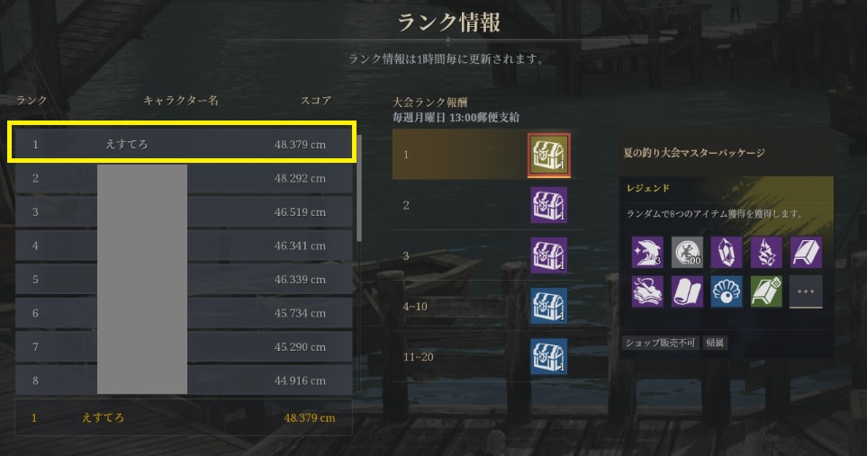 その為、釣りをやっている人が少ないのかオオマダイ部門で暫定1位となりましたw まあ、イベント期間は長いのでこの順位を守れきれるとは思いませんが、なんか嬉しいですね!