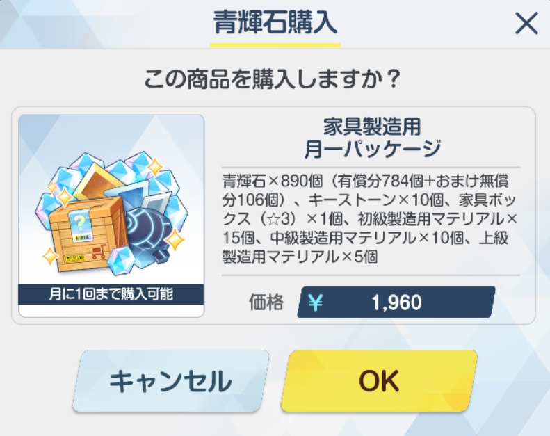 早めにカフェの快適度を上げてしまいたい人は、課金パッケージを購入する手もあり。約2,000円で購入出来るので、無意味にガチャ課金するよりはいいのかなと。