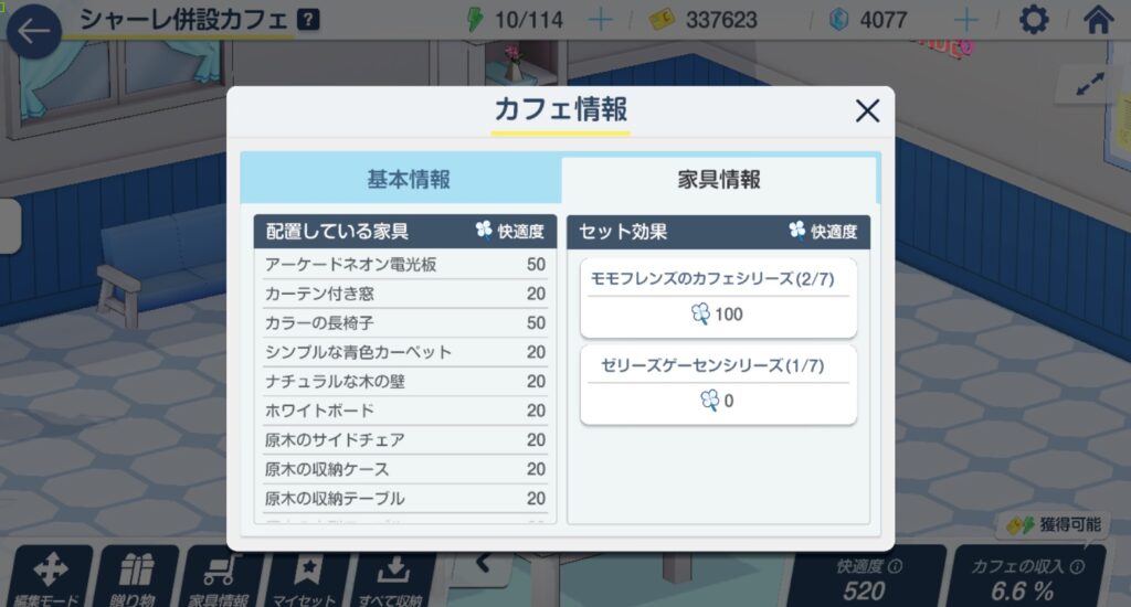 最初はもらえる量もショボいが、カフェ快適度を上げてカフェランクを上げていくと、その収入量も増えていくので、出来るならカフェのランクは早めに上げておきたい。