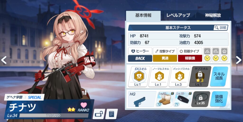 わたしは可能性と見た目を信じてチナツをLV34の星2(神秘解放w)にしました!個人的に、結構優秀だと思ってるんだけど、どうだろうか…?