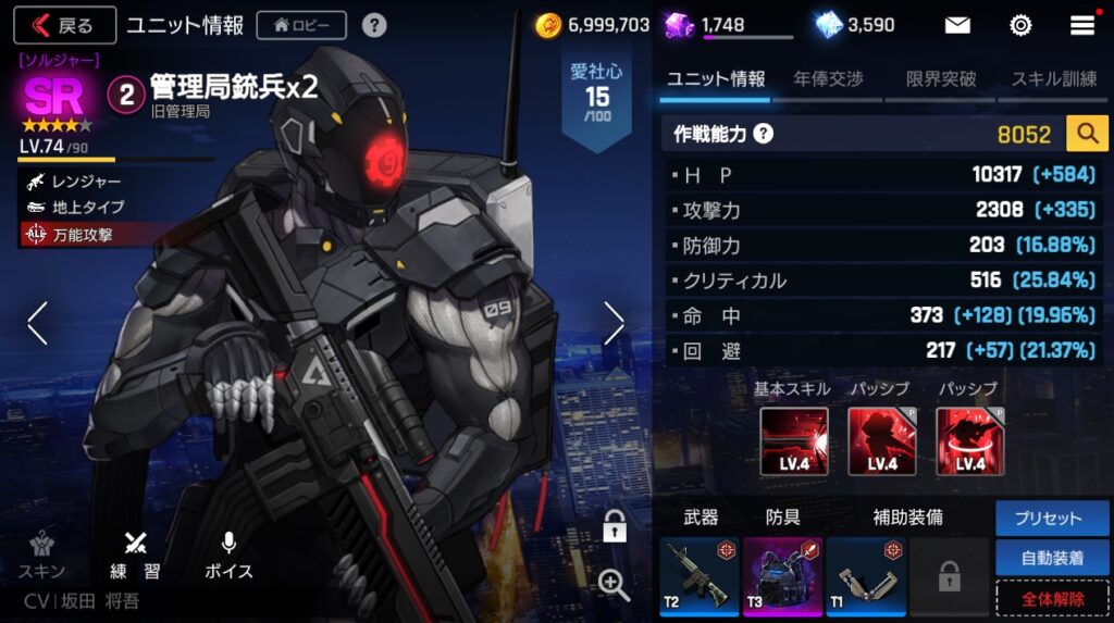補給作戦でクレジットを入手できるのもあるけど、スタミナは別のところに使った方がいいと思う。限界突破に使うコアとかも足りないし、装備とかも足りないからね。