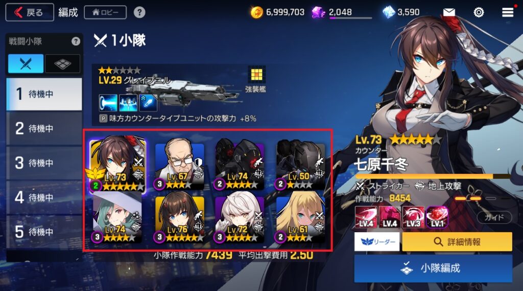 具体的にはメインストーリーEP2のハード・自由契約TASK1-3・ダイブ探査座標26から3小隊編成(支援部隊は含まない)になるので、多くのキャラが必要になってきます。