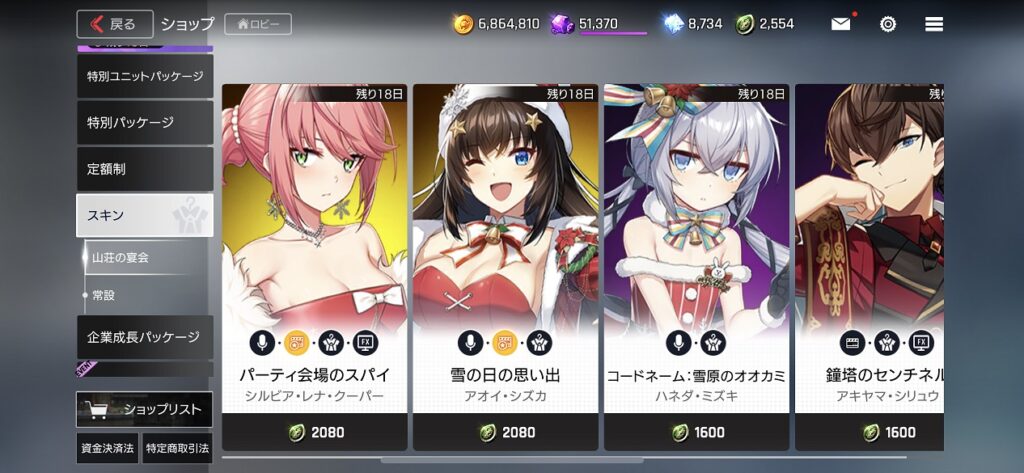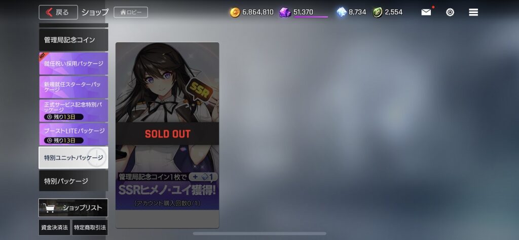 スペシャルプラン解放の為に5,000円位課金したので、それ以外のショップ課金もチェックしてみました。