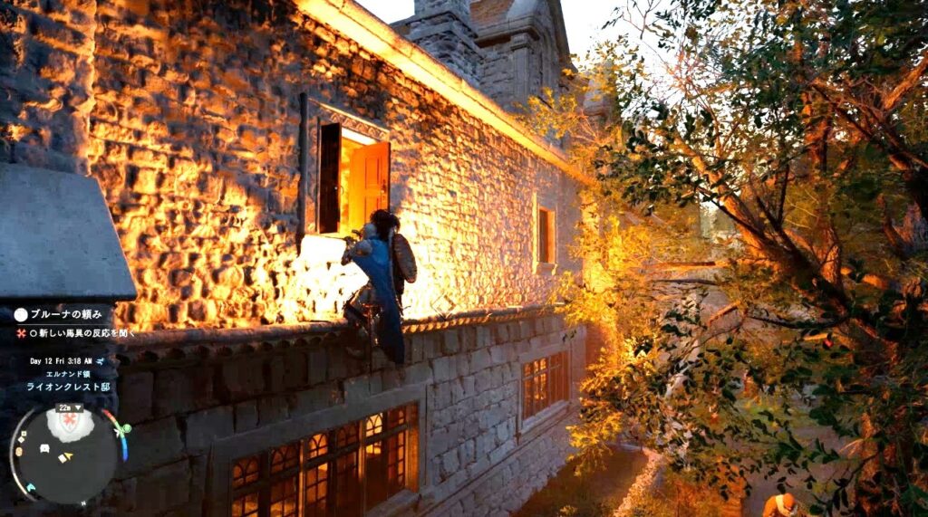 壁を登って2階の窓から侵入する。