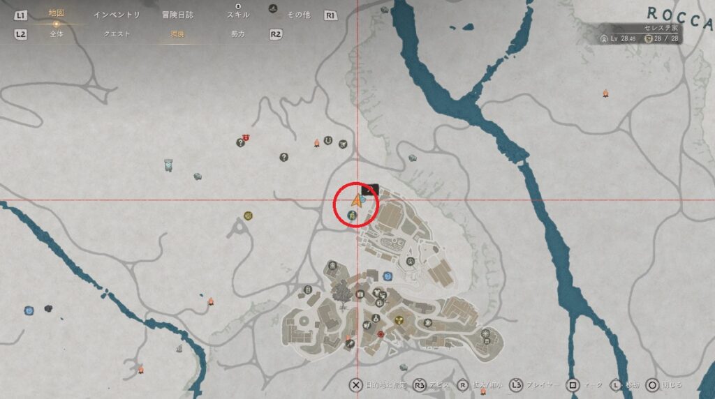 L1ボタンを押しながら青いカーソルを移動させ犬の前に置く。