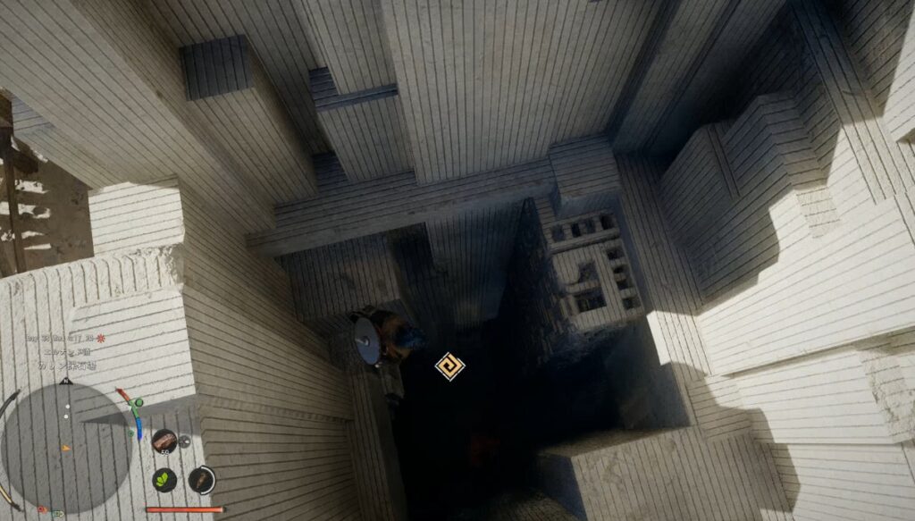 クレーンで石を取り出した場所へ行くと大きな穴が地下続いているので降りる