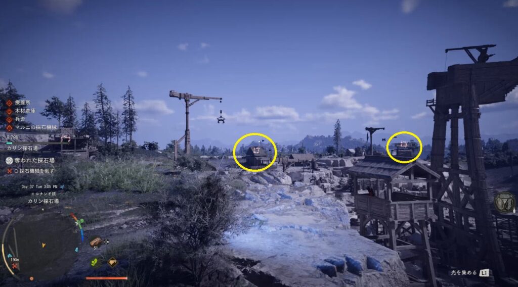 勢力クエストのロバーツ家「奪われた採石場」を追跡状態にしておけばマルニの採石機械の場所は目的地マーカーで表示してくれます。