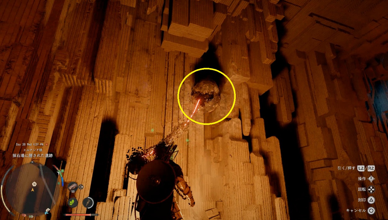 クレーンで石を取り出した場所へ行くと大きな穴が地下続いているので降りる