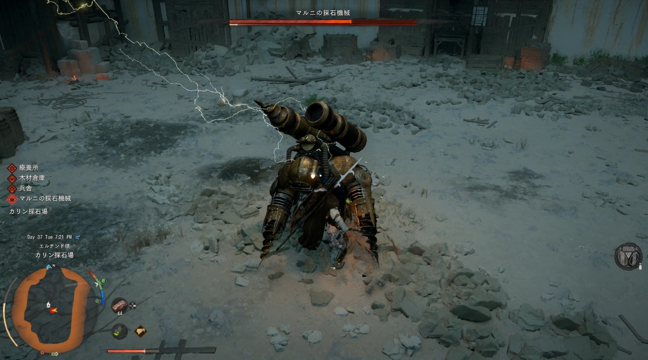 勢力クエストのロバーツ家「奪われた採石場」を追跡状態にしておけばマルニの採石機械の場所は目的地マーカーで表示してくれます。