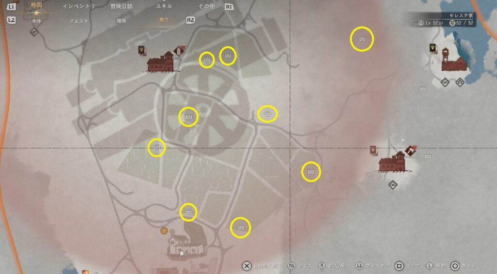 マップを開いて表示を拡大すると戦争兵器の場所が表示されます。後は、任意の場所で5個の戦争兵器を破壊していきましょう。