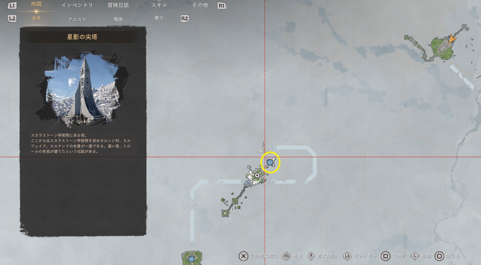 おそらくファストトラベルは解放していると思いますので、地上マップの星影の尖塔あたりでアビスに表示を切り替えれば洞察の至聖所の近くが表示されるかと思います。