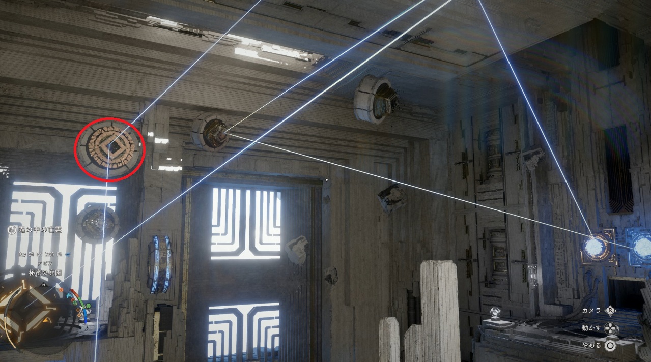 ハメたら球体の装置に摂理の力を使ってレーザーを動かします。