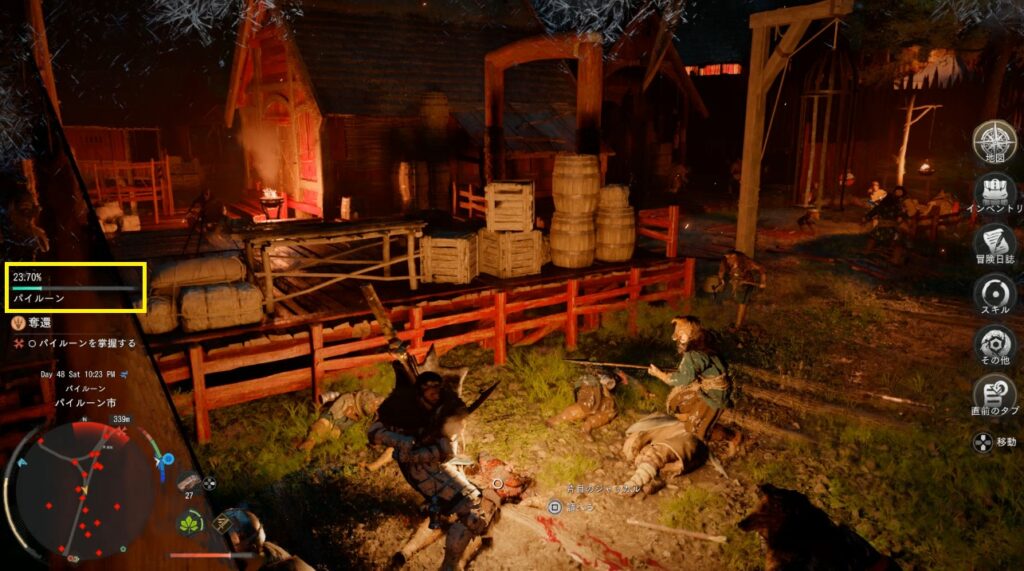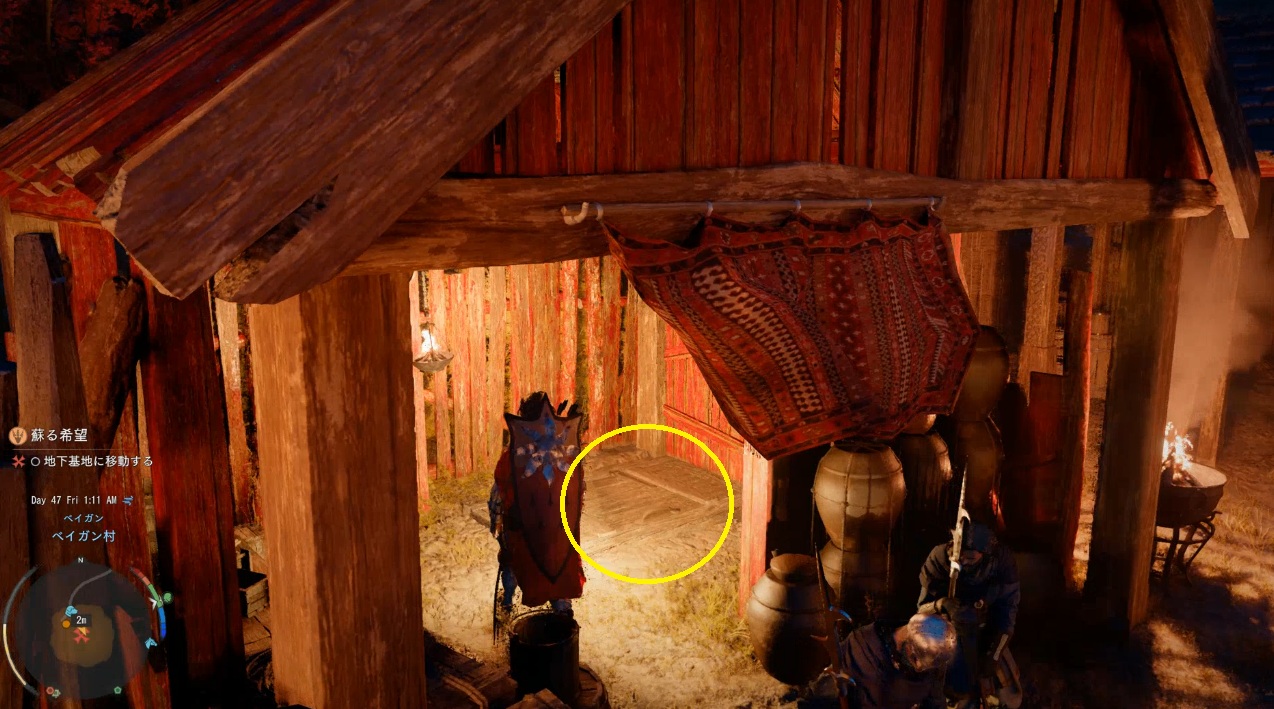 敵陣の中を突っ込んで行く感じで隠れ家に着くとイベント