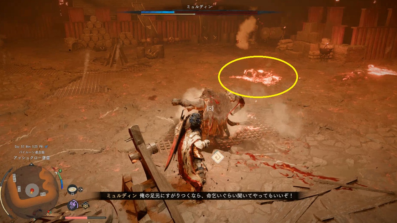 後半も戦い方は一緒。[切り攻撃→バンザイポーズの床攻撃]の後はかなり隙が大きくなるのでダメージを稼げます。床の炎の頻度が上がった気もするけど勘違いかもしれない…。