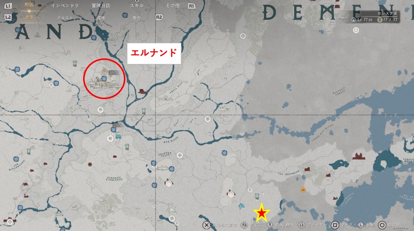 場所はエルナンドから南東方面へいったところで、勢力クエストのポロリン村の守り人を進めていくと近くに行く事になります。「?」のエリアになりますから立ち寄る人も多いのかなとは思います。