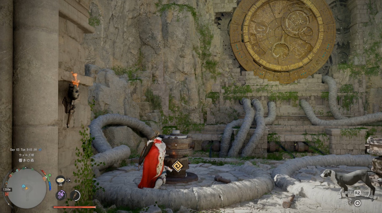 アングルが変わって効果音が鳴れば成功です。水が引いてアビス標石にアクセスできるようになります。
