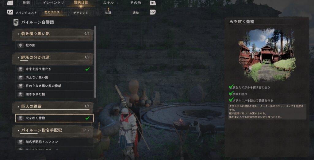 「火を吹く荷物」はメインクエスト第7章をクリアすると発生する勢力クエストです。