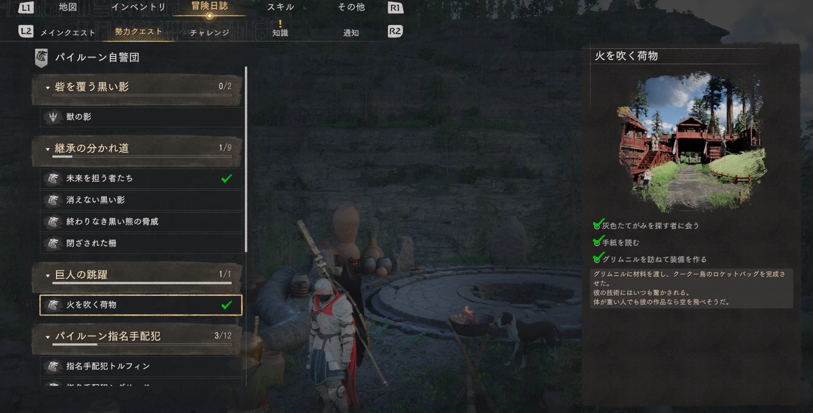 「火を吹く荷物」はメインクエスト第7章をクリアすると発生する勢力クエストです。