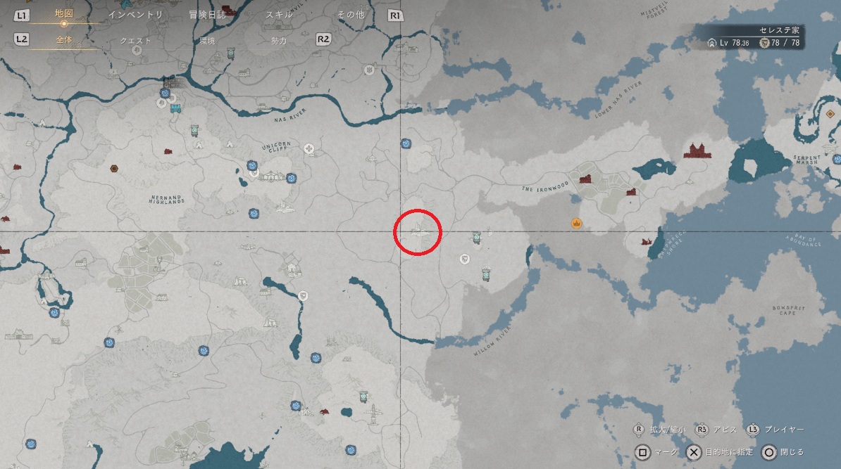 改心の聖域は拠点から東方面にいったところです。金風商会を越えてさらに東へいきます(まあマーカーがあるので迷わないとは思います)。