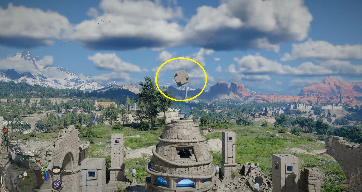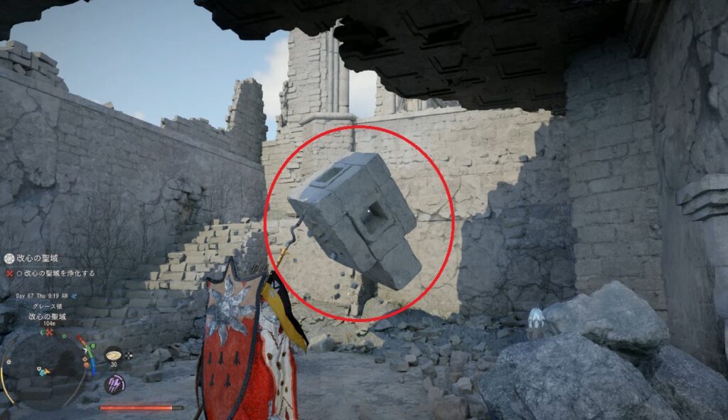 ドームの装置から南側の遺跡に行って柱の先端部分を回収する。場所はミニマップに表示されます。