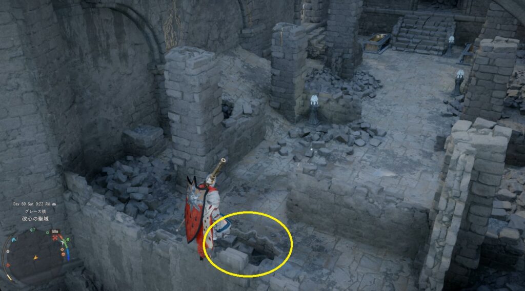 棺が2つ置いてあるエリアの端っこに落とし穴、降りると奥に宝箱