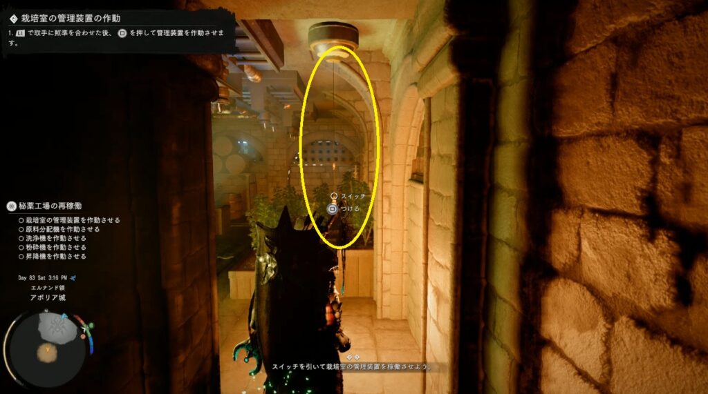 ここまで来るとクエストクリア。一番最初の地下にあった栽培室へいくと肥料噴霧器が入手できます。