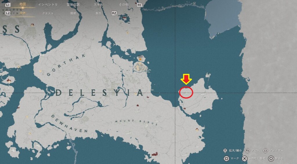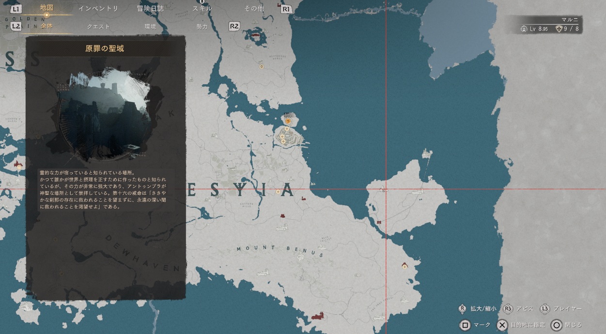 原罪の聖域はデレシアの東にあります。全体マップでもほぼ東の端といってもいい場所にあるので、拠点やエルナンドから向かうとなるとかなりの長旅となります。