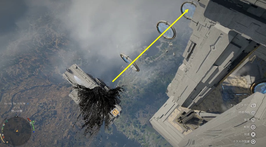 次はこの位置にある輪をくぐる