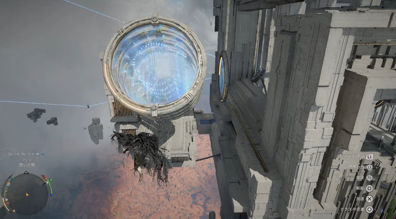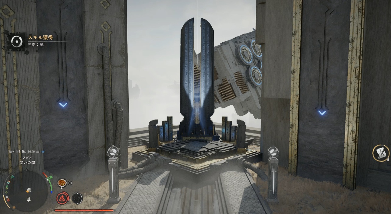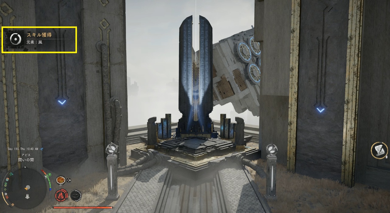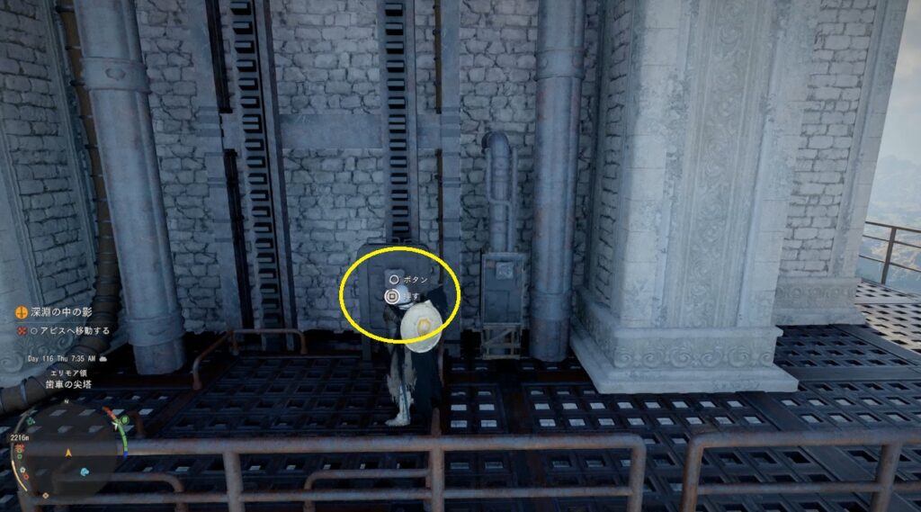 壁に付いているボタンを押す。エレベーターが動き始め頂上まで行ける。頂上ある小部屋に入るとアビスゲートが出現しアビス「問いの間」と繋がっている。