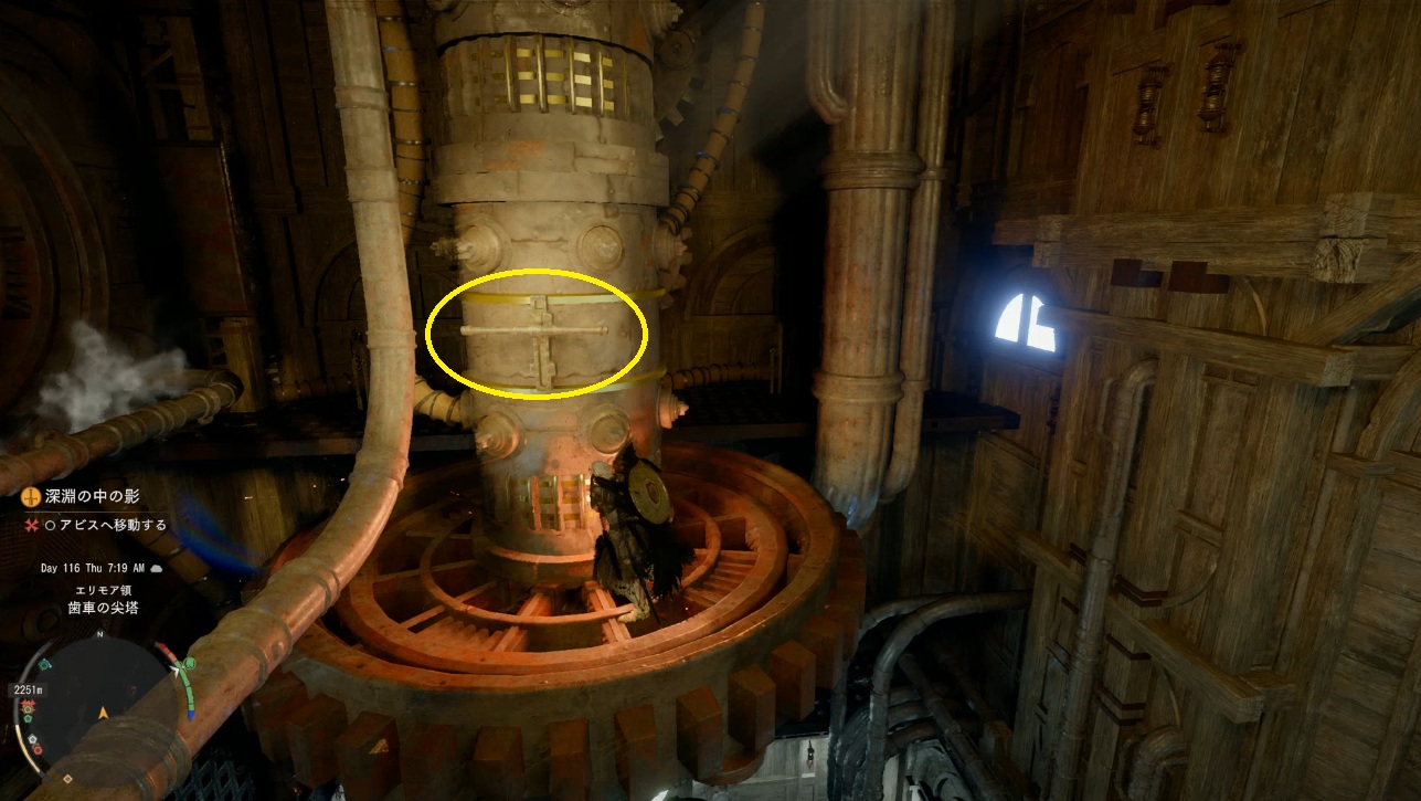 歯車が動いている場所はがんがん上に登って大丈夫です