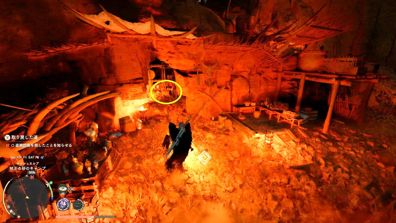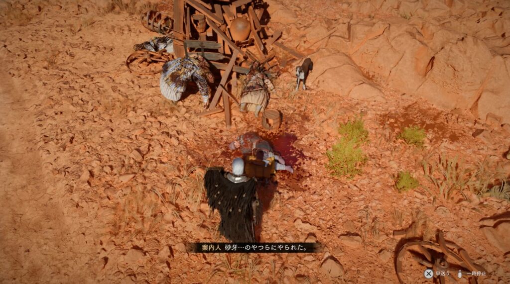 砂漠の無法者たちのクエストは吠えるキャンプ近くのファストトラベル付近にいる瀕死のNPCキャラから発生します。