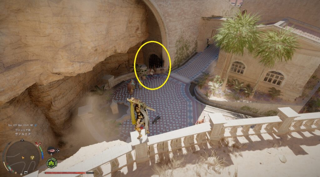 暗紅の礼装のプレートブーツの場所は紅の砂漠エリアにあるヴァルニアの街です。全体マップだと北東の一番端に位置するのでかなり遠いです。