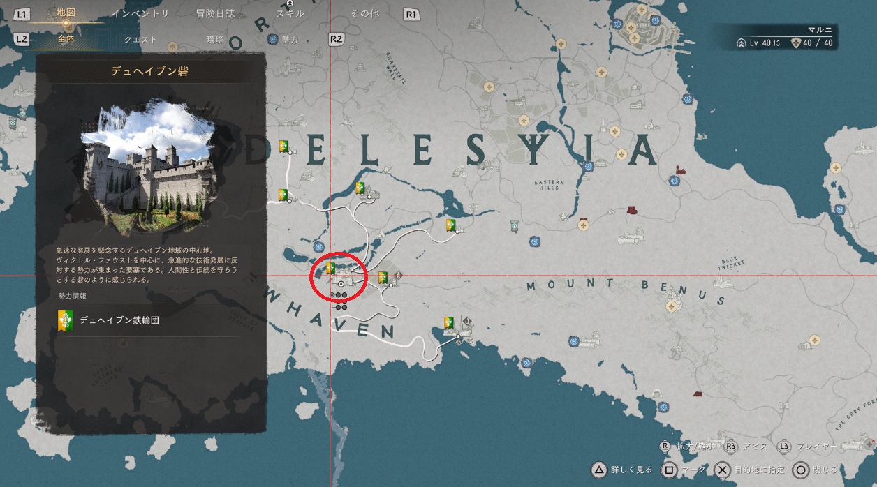 暗紅の礼装のプレートグローブがあるのはデレシアにあるデュヘイブン砦です。デュヘイブン砦は覆面をしているとすぐに敵対して襲われるので行く時は覆面を外していきましょう。