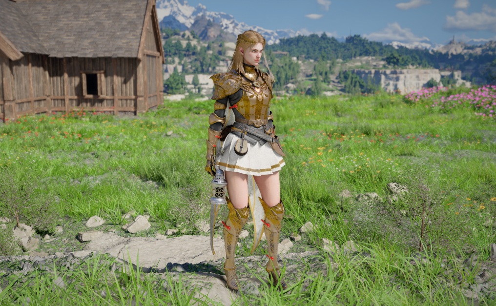 全体的に白と金を基調としたデザインでスカートスタイルの装備です。