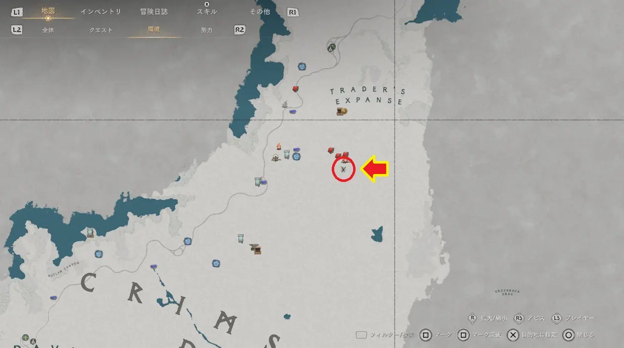 フェニックスがいる場所は紅の砂漠エリアでTRADER’S EXPANSEの「X」の文字から南に行ったところ。リブルの魂を入手している人は[冒険日誌-知識-生命体-伝説の生物]からフェニックスを見れば地図で生息場所が確認できます。