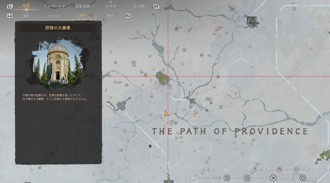 ゲーム序盤に訪れたアビスですが、アビスが広すぎて場所が分からないって人は[冒険日誌-知識-冒険-アビス]と進んで摂理の大書庫ににカーソルを合わせましょう。その後に【地図を見る】を選択すればマップで表示されます。